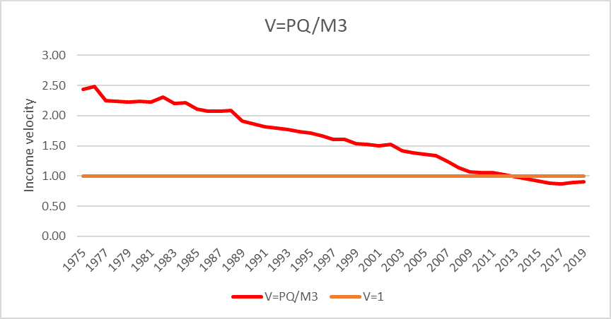 - Red Curve; Income velocity = Price*Quantity/ M3